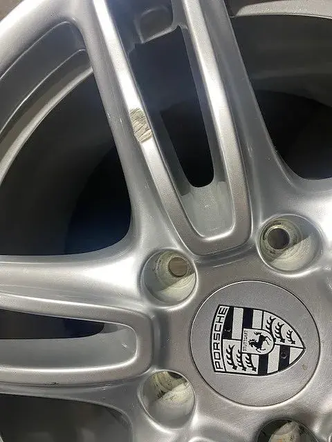 ポルシェのホイールです、スポーク部にガリ傷がついてしまいました。専用のパテを使って形成後、塗装をして仕上ました。このような簡単な修理から、リムの曲がりやリムのカケまで諦めていた修理、もう一度連絡してみてください!